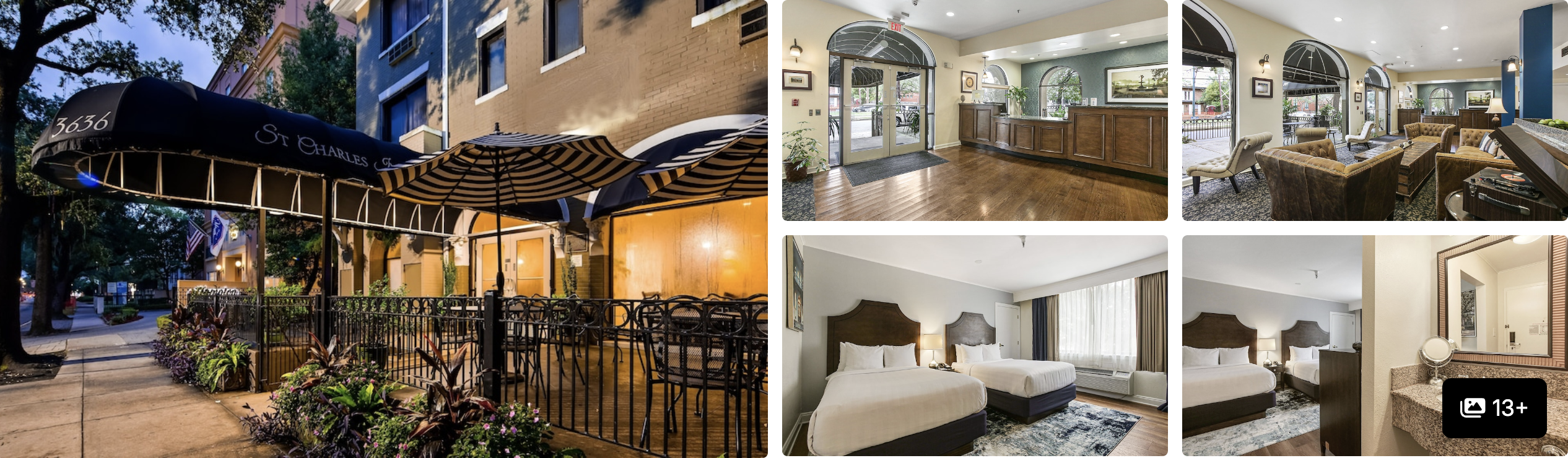 A Warehouse District hotel steps from Canal with quiet courtyards and functional room layouts. You can walk to both St. Charles and the French Quarter, and the courtyards and intimate lobby bar keep noise down. Couples and solo travelers use it as a calm base close to the action. The Warehouse District location also puts museums within walking distance.