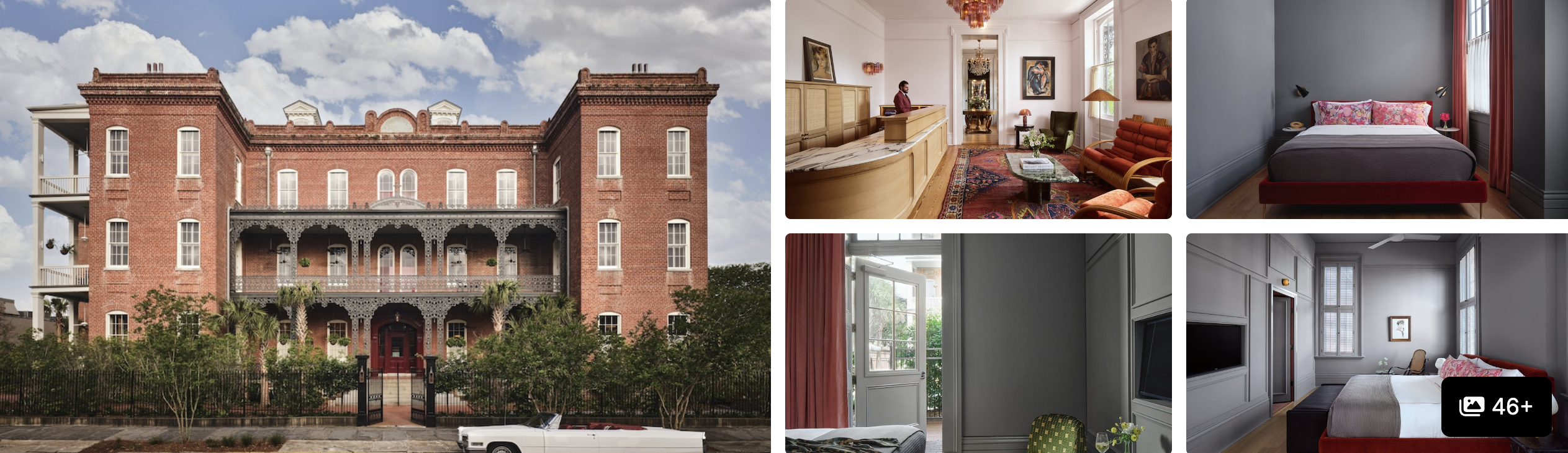 A 14-room boutique hotel on St. Charles Avenue near Napoleon, with a courtyard pool and modern design. The small scale and thoughtful rooms appeal to couples and design-focused travelers. The St. Charles streetcar stops outside for transit downtown when you're not watching parades. Magazine Street runs roughly five blocks away—a 7 to 10 minute walk—with cafés and shops.